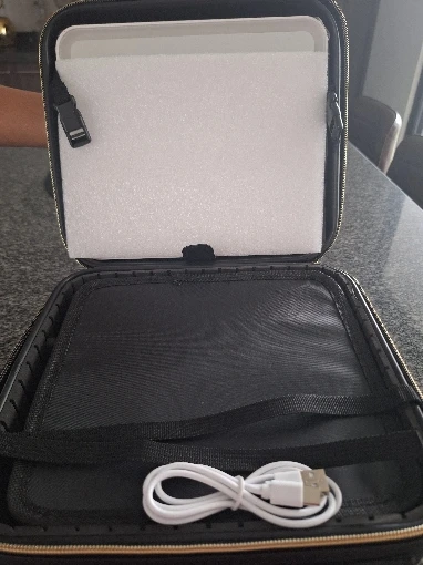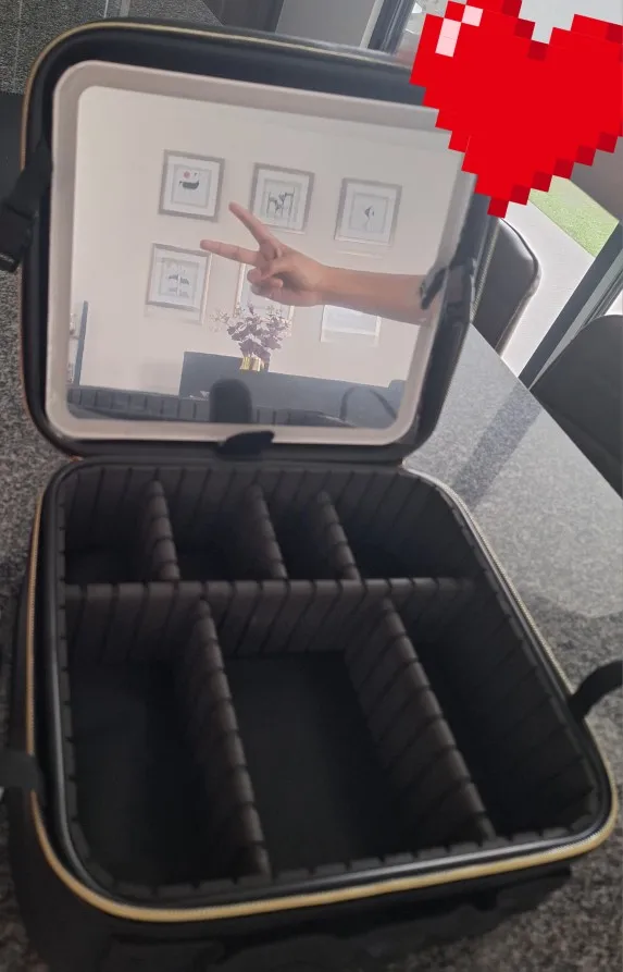 Enhance your beauty routine with this LED Lighted Cosmetic Case with Mirror, a stylish, travel-friendly solution for makeup storage and on-the-go glam. Designed with a large-capacity compartment yet compact enough to carry effortlessly, this portable dresser features an adjustable brightness full-screen mirror to ensure flawless application in any lighting. Whether you're at home, travelling, or backstage at a performance, this makeup case is your perfect beauty companion.